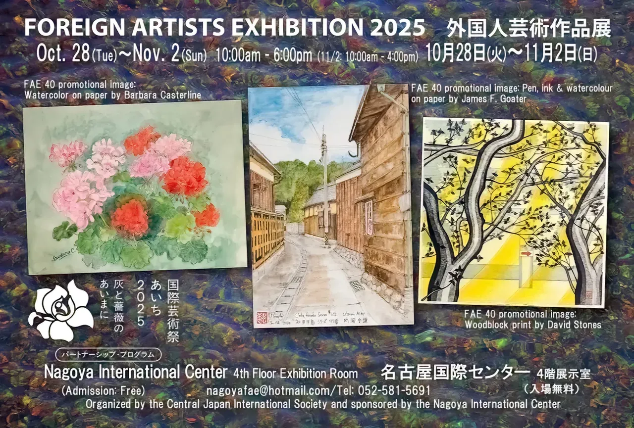 Nagoya’s longest-running international art show turns 40 this year. The Foreign Artists Exhibition (FAE) returns to the Nagoya International Center with a week of painting, photography, ceramics, sculpture, and digital/mixed media—all in a friendly, drop-in setting that’s free to explore.