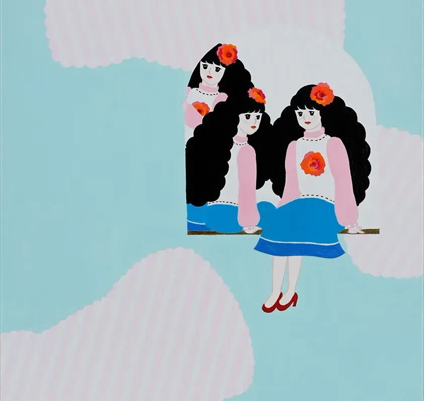 Mayuko Morita, born in Nagoya, paints with fine brushwork and dreamlike color. Landscapes, figures, fabric patterns that feel both intimate and slightly off-center. Her work suits small rooms well.