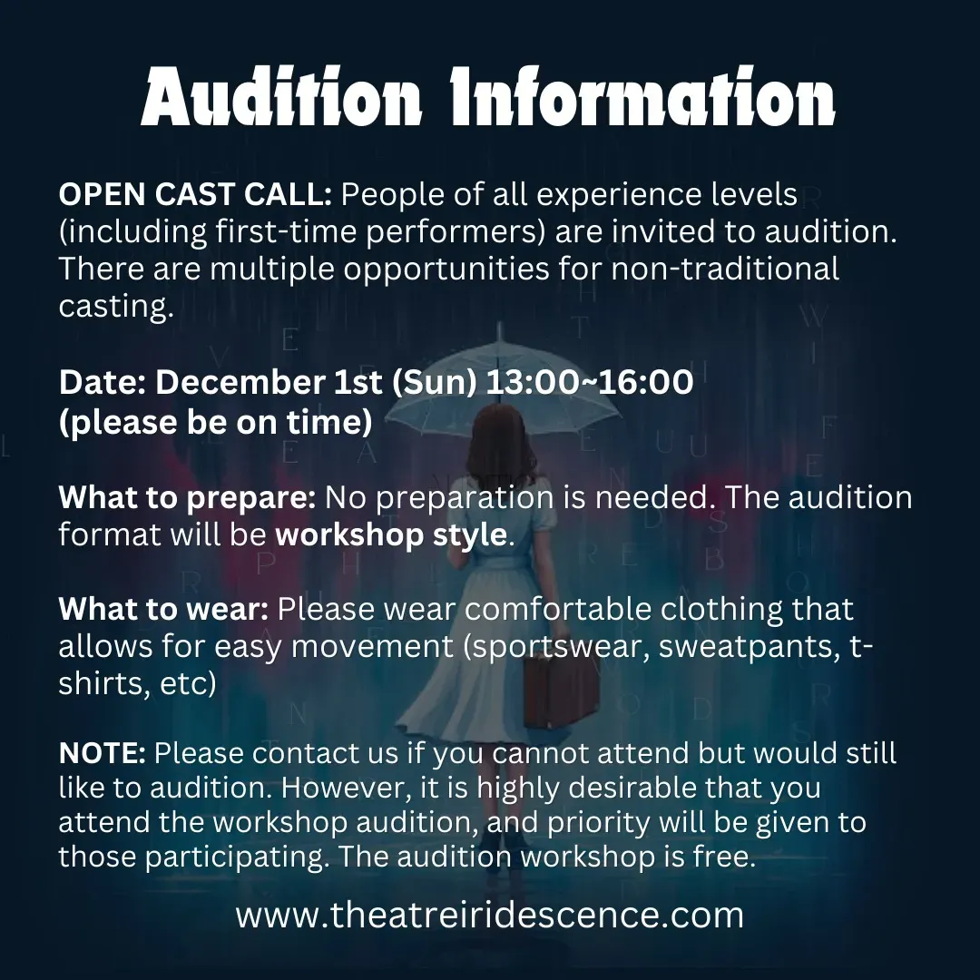 The play will be staged at Chikusa Playhouse in August 2025, and Theatre Iridescence is calling on performers of all experience levels to be part of this journey.