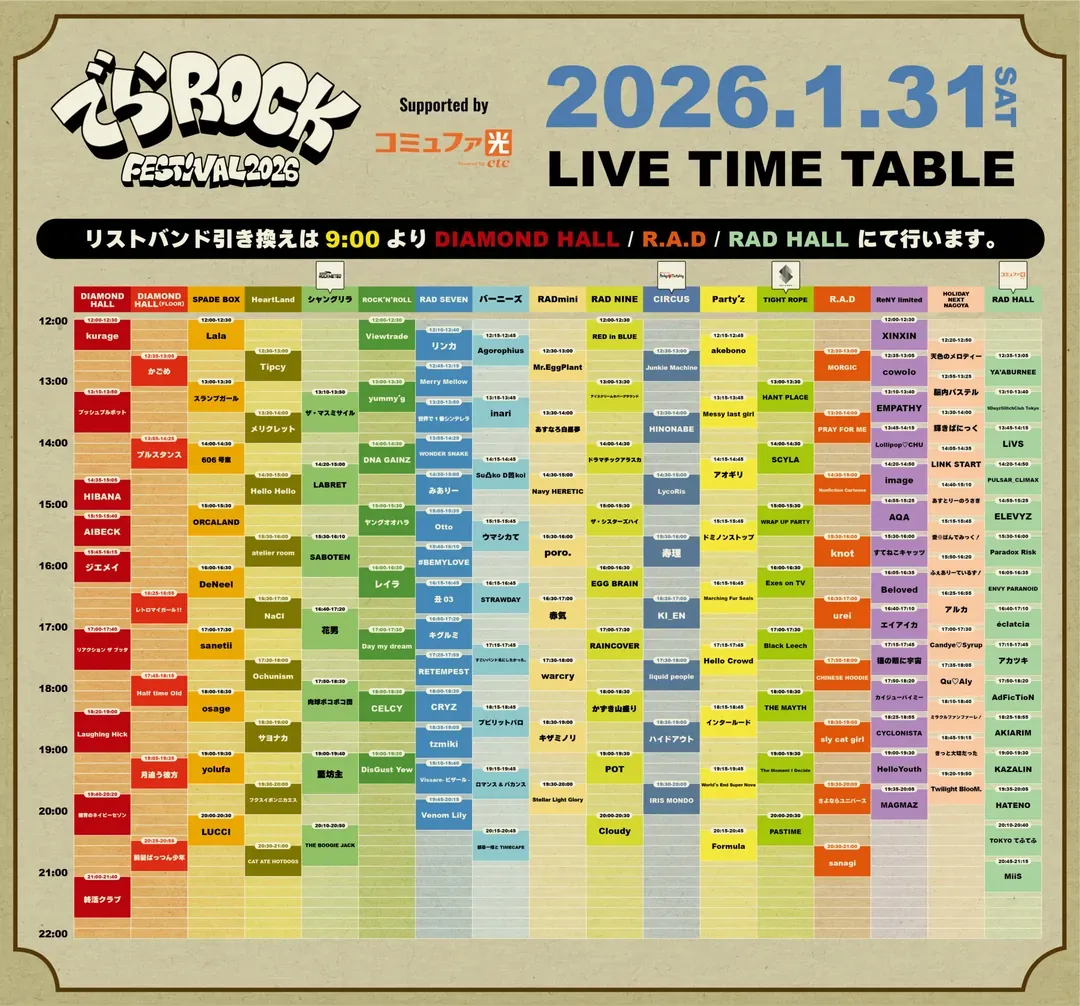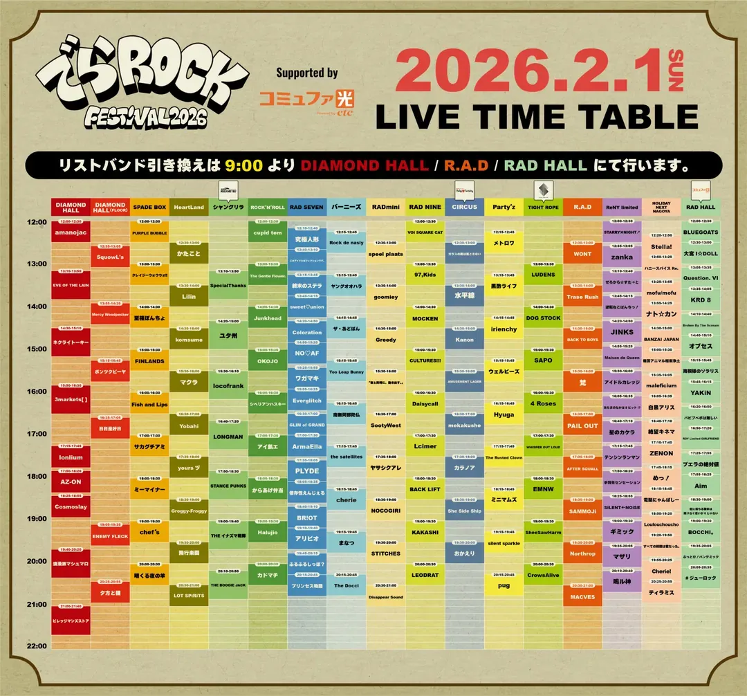 This is Dera Rock Festival. Two days. Sixteen live houses scattered across the endless concrete of Sakae and its surroundings, most of them close enough to move door to door, or cut across one shivering backstreet. One wristband gets you into all of the venues. Bands play straight through at each spot.