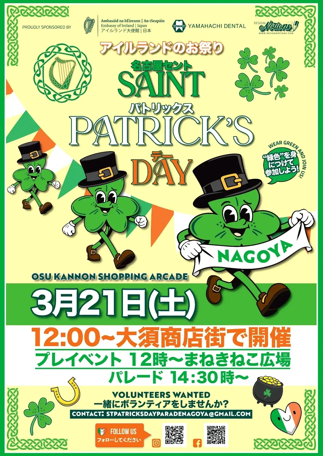 It is Saturday, March 21, 2026, and Nagoya’s St. Patrick’s Day Parade begins here.