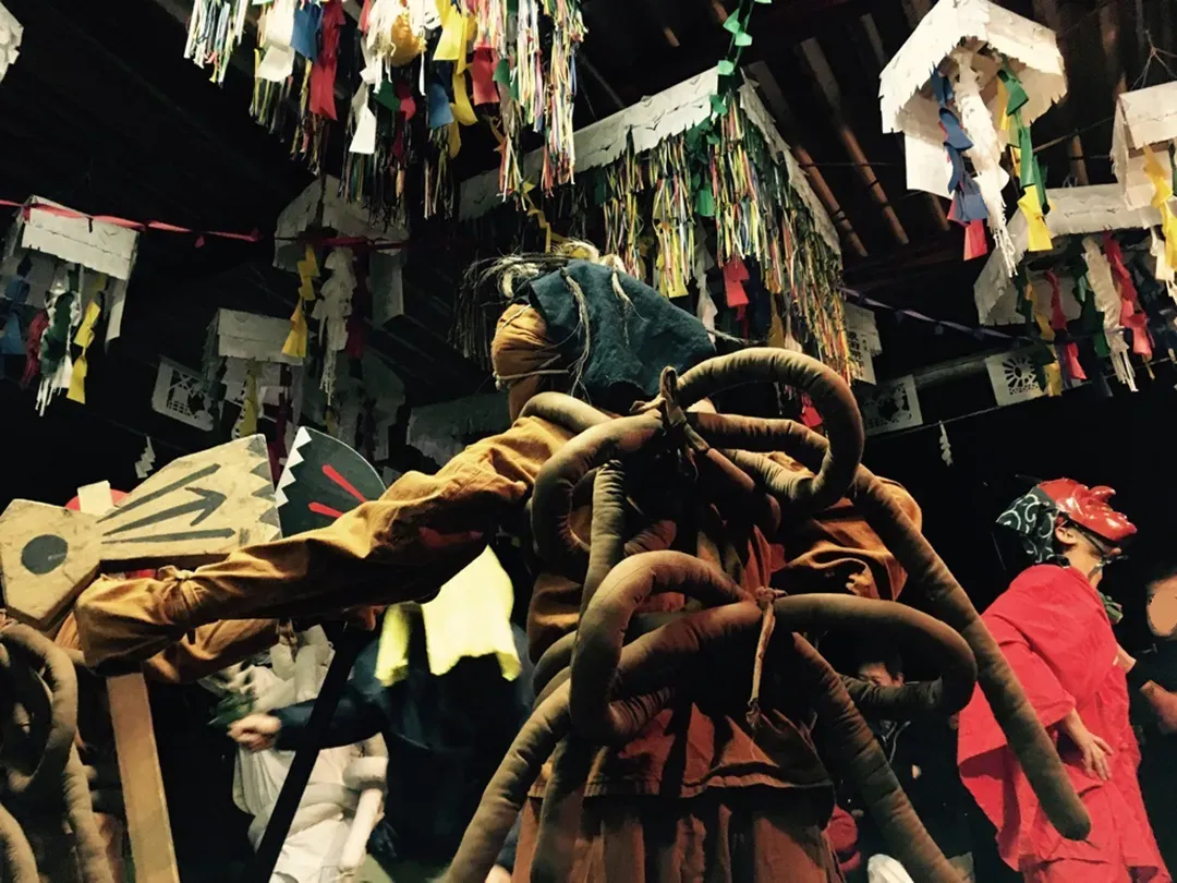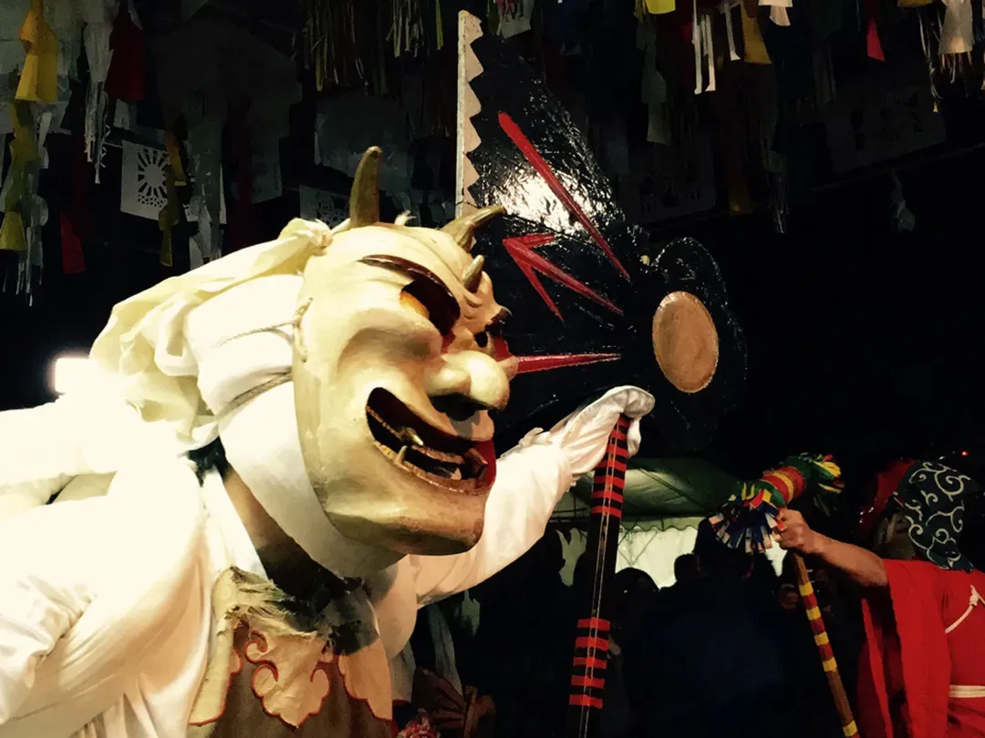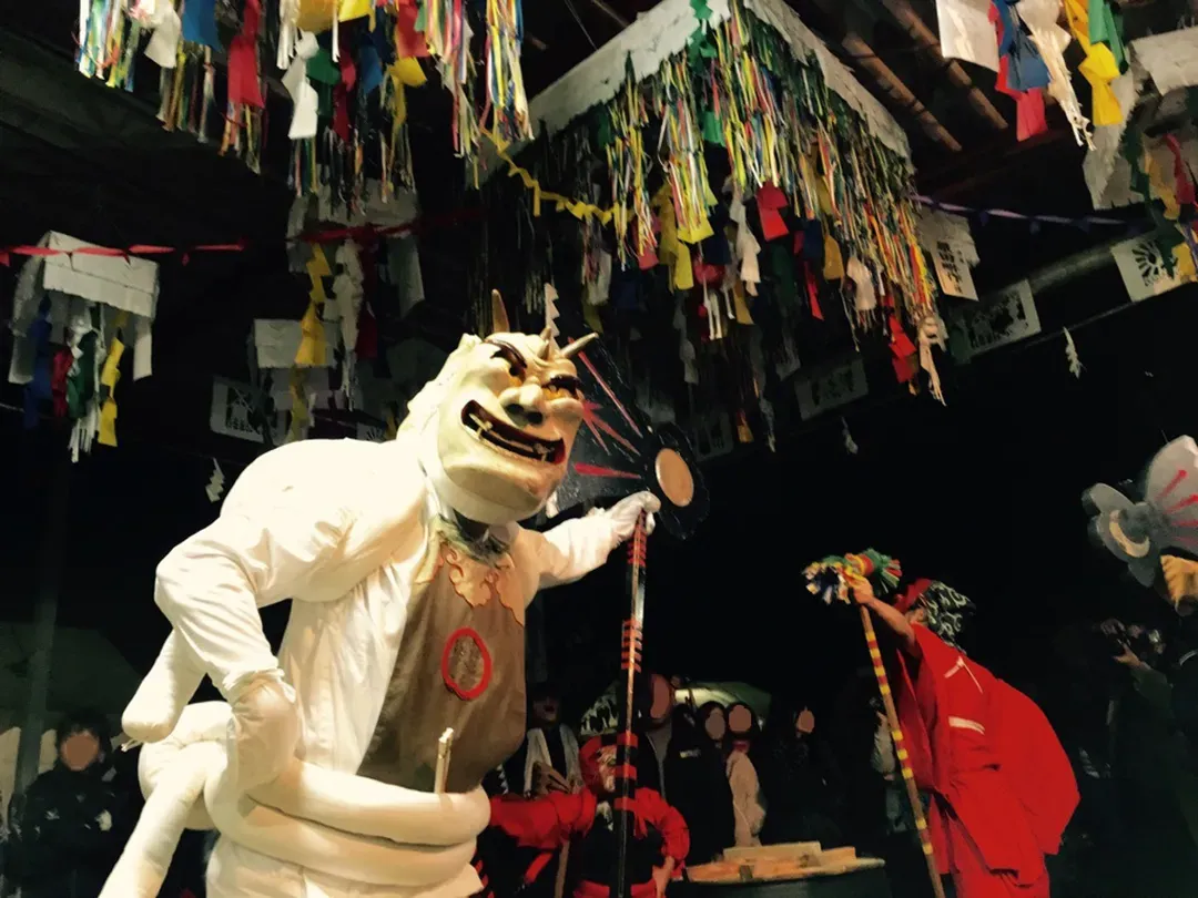 The Hana Festivals are old—older than the documentation, older than the villages themselves in some cases. They're Shinto-influenced but local, shaped by mountain Buddhism and harvest cycles and winter solstice darkness. Paper flowers hang from the ceiling, red and white and yellow, fluttering when someone passes beneath. Demons appear throughout the night. Drums mark time. The fire burns.