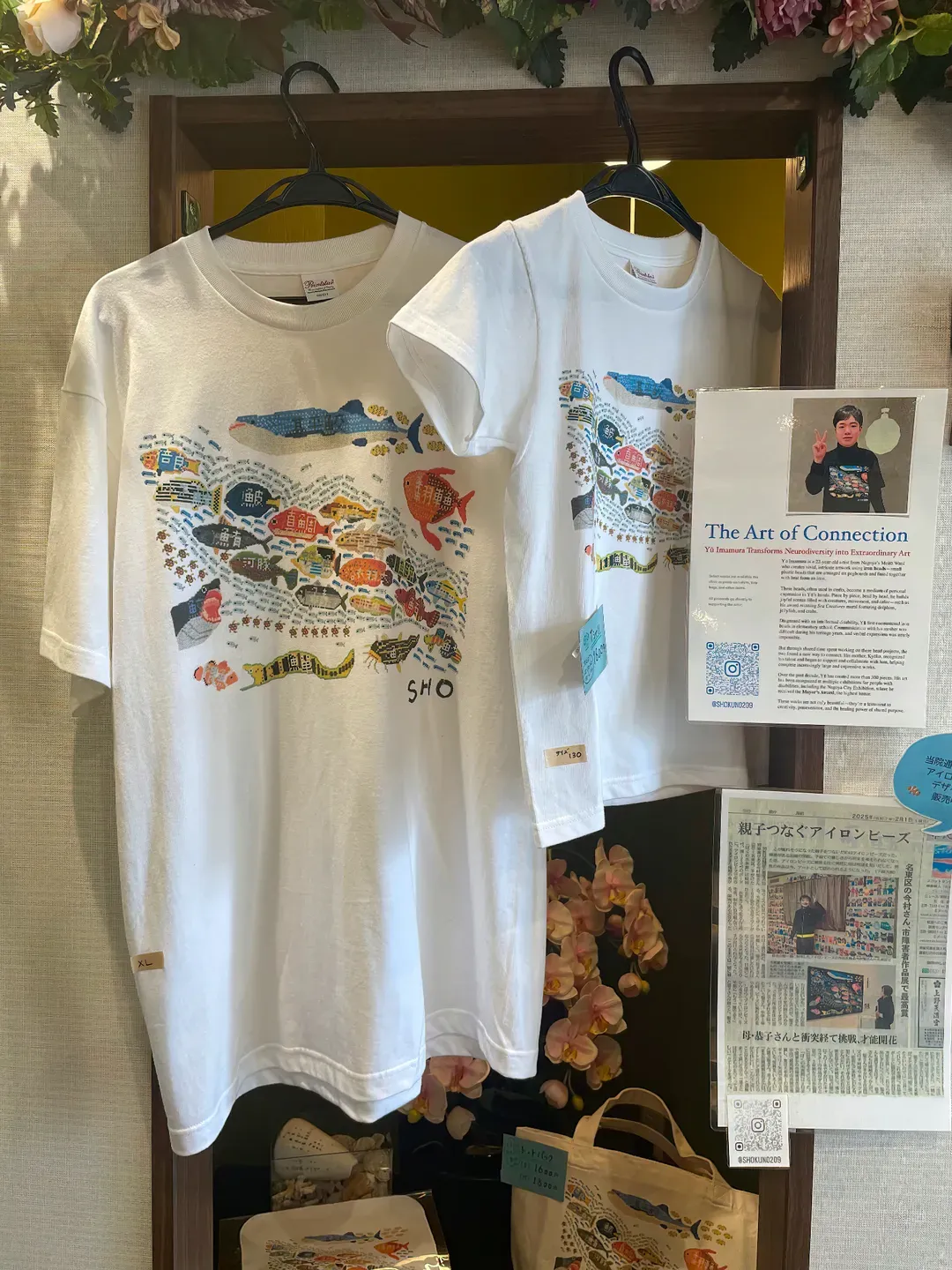 Select works, such as T-shirts, tote bags, and other items, are available for purchase at The Hayakawa Mental Health Clinic Issha.