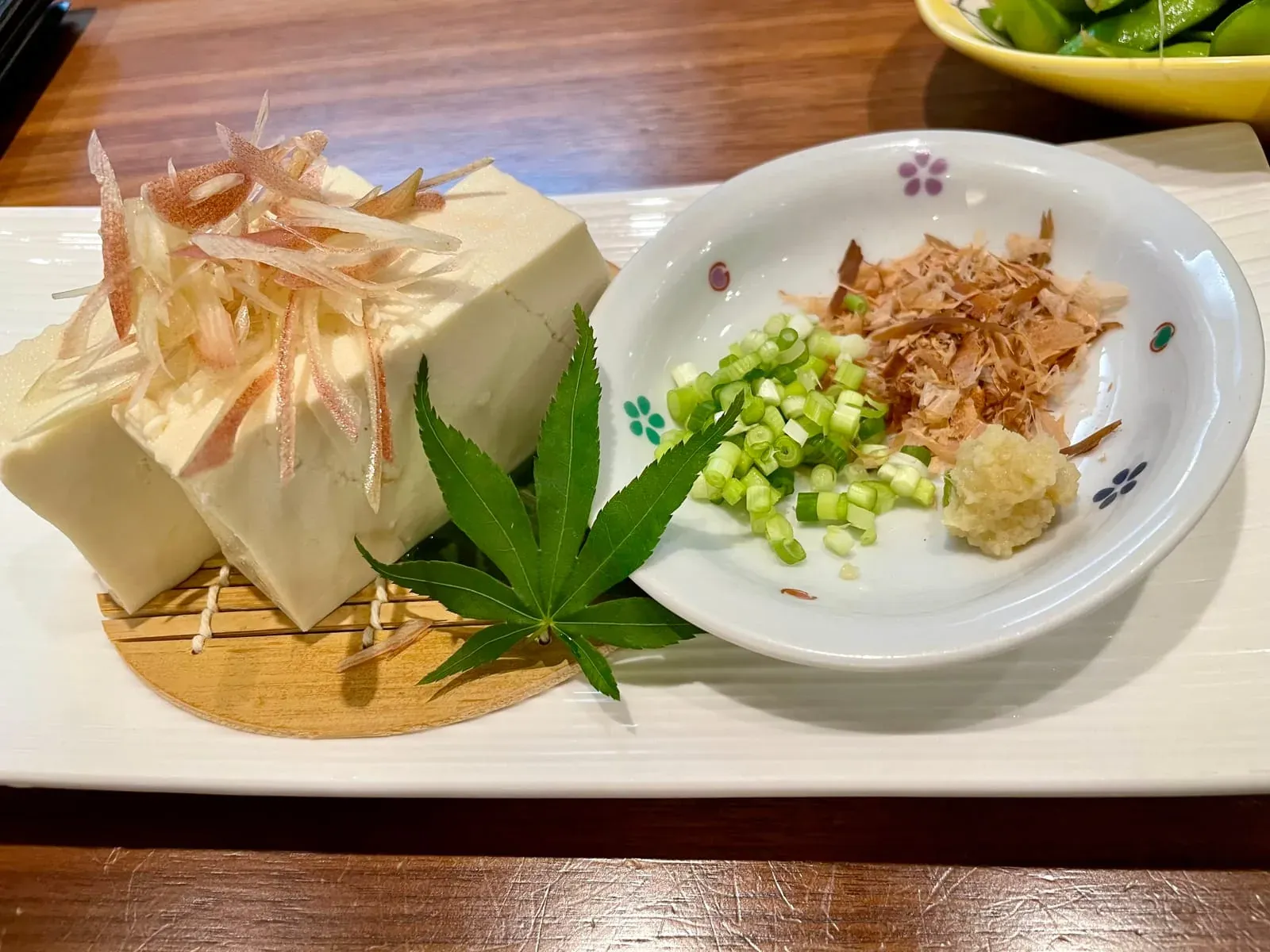 I give high marks to their fresh and cold Hiyayakko (cold tofu), served elegantly with grated ginger, green onions, and katsuobushi (bonito flakes) on the side.