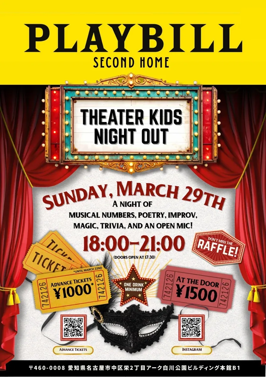 Between acts, there's trivia (musical theater themed, prize for the winning team) and a raffle with tickets at ¥100 each. Prizes include a free art workshop with Cat Halliday, half off a month of voice lessons at NAYUTAS Motoyama Music and Dance School, and a tour around Nagoya with local guide Diederik Potharst.