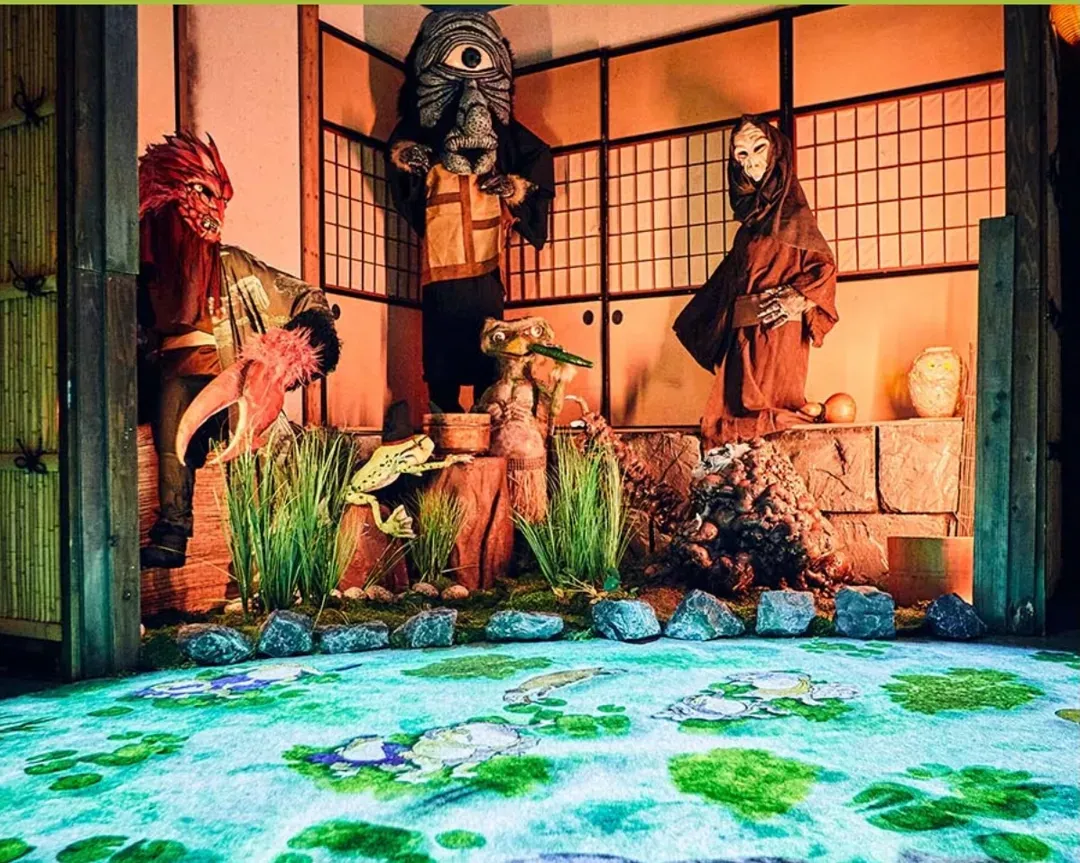 Step inside and discover a world where centuries-old artworks such as Hyakki Yagyō (Night Parade of One Hundred Demons), Hyakumonogatari (One Hundred Ghost Stories), and legendary figures like oni, tengu, kappa, and tsukumogami are reimagined with cutting-edge 3DCG, projection mapping, holographic screens, and life-size sculptural models.